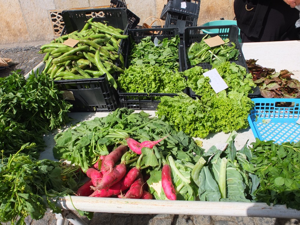 weil ich die frühen Erdbeeren kaufen möchte, gehe auch ich, wie ich später feststelle, alle anderen Evoranos, auf die zwei Marktzeilen. Hauptsächlich wird grünes Zeug angeboten, von dem ich das wenigste kenne. Daneben natürlich Unmassen von Zitronen und Orangen mit ihren sonnigen Faben gelb-Orange, Honig und Eier. An zwei Ständen entdecke ich Spargel und Erdbeeren. Oliven habe ich schon, denn auf dem Markt am Dienstag wollte ich „ein paar“ kaufen. Das endete mit 500 g für 1,50 € an denen ich jetzt wohl die nächsten Jahre essen werde.