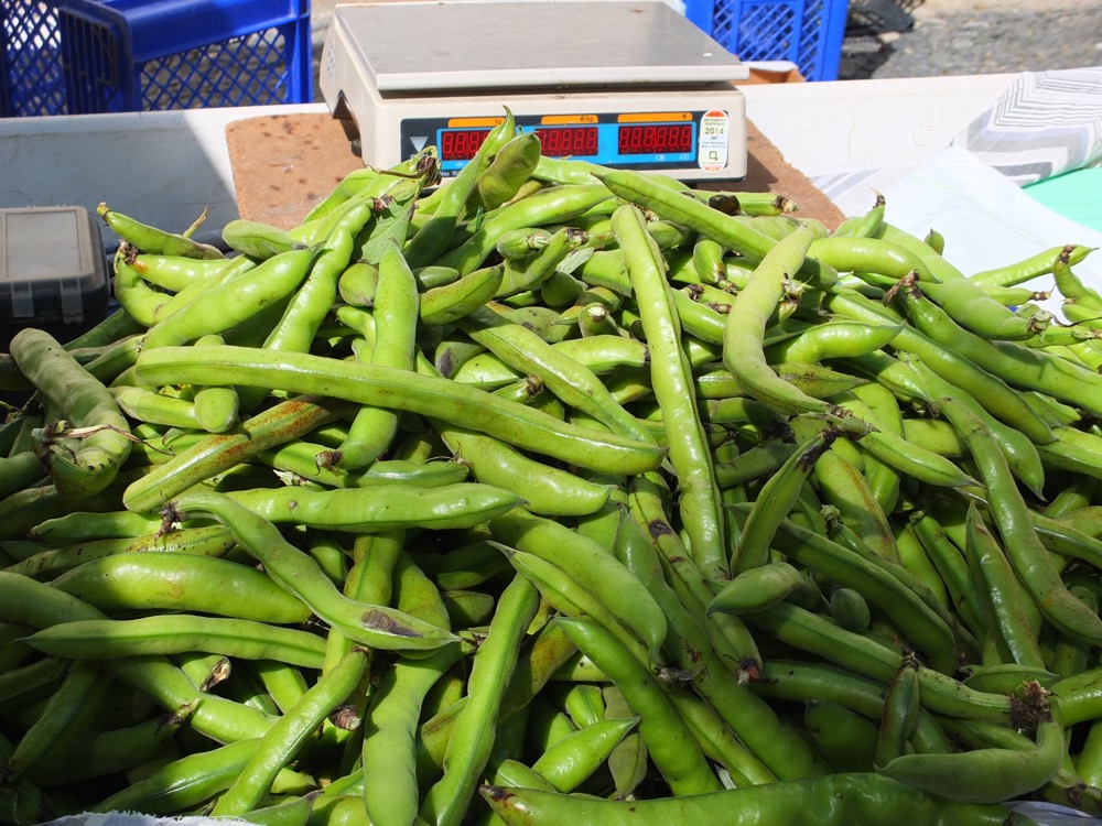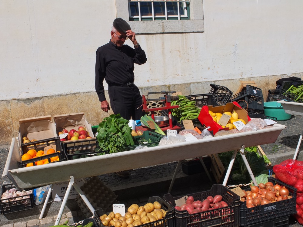Den Markt selbst und die Kaffees in der Umgebung gehören weiter den Portugiesen, nur wenige Touris verirren sich auf den Platz des 1. Mai und die beiden hinter den Markthallen versteckten Marktstände örtlicher Bauern fallen kaum ins Auge. Da Grünzeug überwiegt, keine Nippes und Souveniers zu kaufen sind, ist das ja „langweilig“. Hatte ich schon berichtet, dass Eier in die Tüte gepackt werden, fast fertig für Rüherei, denn die Portugiesen bringen ihre Eierpackungen natürlich mit. Ich auch, inzwischen.
